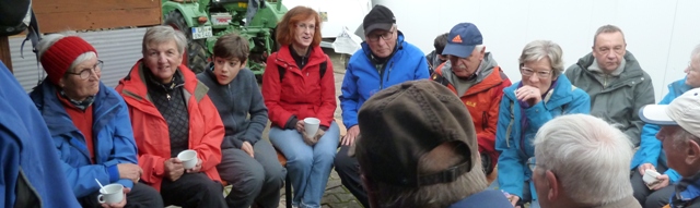 Die Wanderer trafen sich am Enzplatz und fuhren in Fahrgemeinschaften nach Großingersheim. Die Wanderung begann beim Parkplatz Fischerwörth. Zunächst ging es unterhalb der Weinberge durch die Neckarauen. Nach ca. einer dreiviertel Stunde wurde der Wanderweg erreicht und es ging hoch in den Wald und nach Hessigheim. Im Landgasthaus Schreyerhof kehrte die Gruppe mit 23 Personen dann ein. Gestärkt führte die Rundwanderung weiter, rechts der Straße nach Kleiningersheim durch den Wald hoch, weiter durch die Felder, um später die Landesstraße zu queren um auf den Panoramaweg zu kommen. Am Kleiningersheimer Schloss ging es vorbei um dann beim Römerhof wieder abzusteigen auf den Talweg. Dort hatte unser Zunftmitglied Werner Leibrand mit seiner Frau einen unerwarteten Empfang für die Gruppe vorbereitet. Der Tisch war mit Hefekranz, Kaffee, Brezeln, eigenen Wein, usw. reichlich gedeckt. Die Gruppe bedankte sich und verabschiedete sich mit einem Lied. Die Wanderstrecke war 3,5 Stunden. <Bilder>