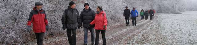 Einunddreißig Wanderer starteten bei unter null Grad und viel Raureif an der Löchgauer Steige und gingen über den Niedernbergweg zur neuen Aussichtskanzel und blickten auf das mit Nebelschwaden überdeckte Besigheim. Weiter ging es dann Richtung Löchgauer Obsthalle und durch den "Raureifwald" hinab ins Baumbachtal. Über die Felder wurde dann Erligheim erreicht und im Grünen Baum zur Mittagsrast eingekehrt. Danach wurde nach Löchgau gewandert und bei unserem Zunftmitglied Ellke Trinkner auf einen Kaffee Station gemacht. Aufgewärmt ging es dann durch Löchgau und weiter zu den Autos am Ausgangspunkt an der Löchgauer Steige. Die Wanderstrecke war 3,5 Stunden. <Bilder>