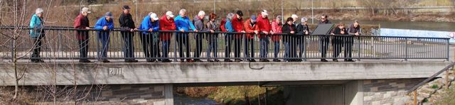 Bild: Die Wanderer an der Fischzählstelle bei der Poppenweiler Schleuse