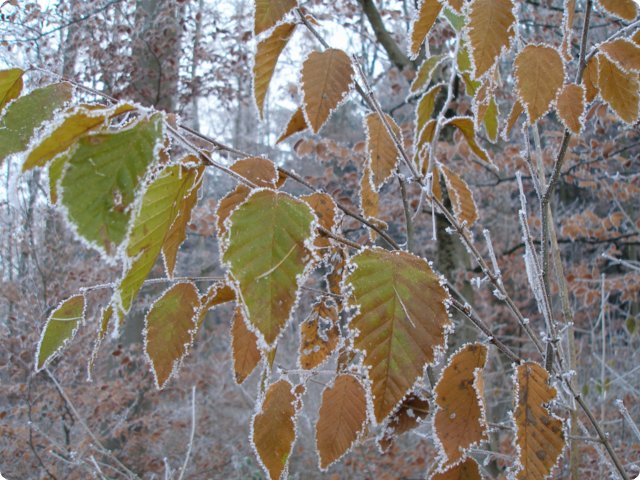 Raureif, bei einer früheren Wanderung im Walheimer Wald.